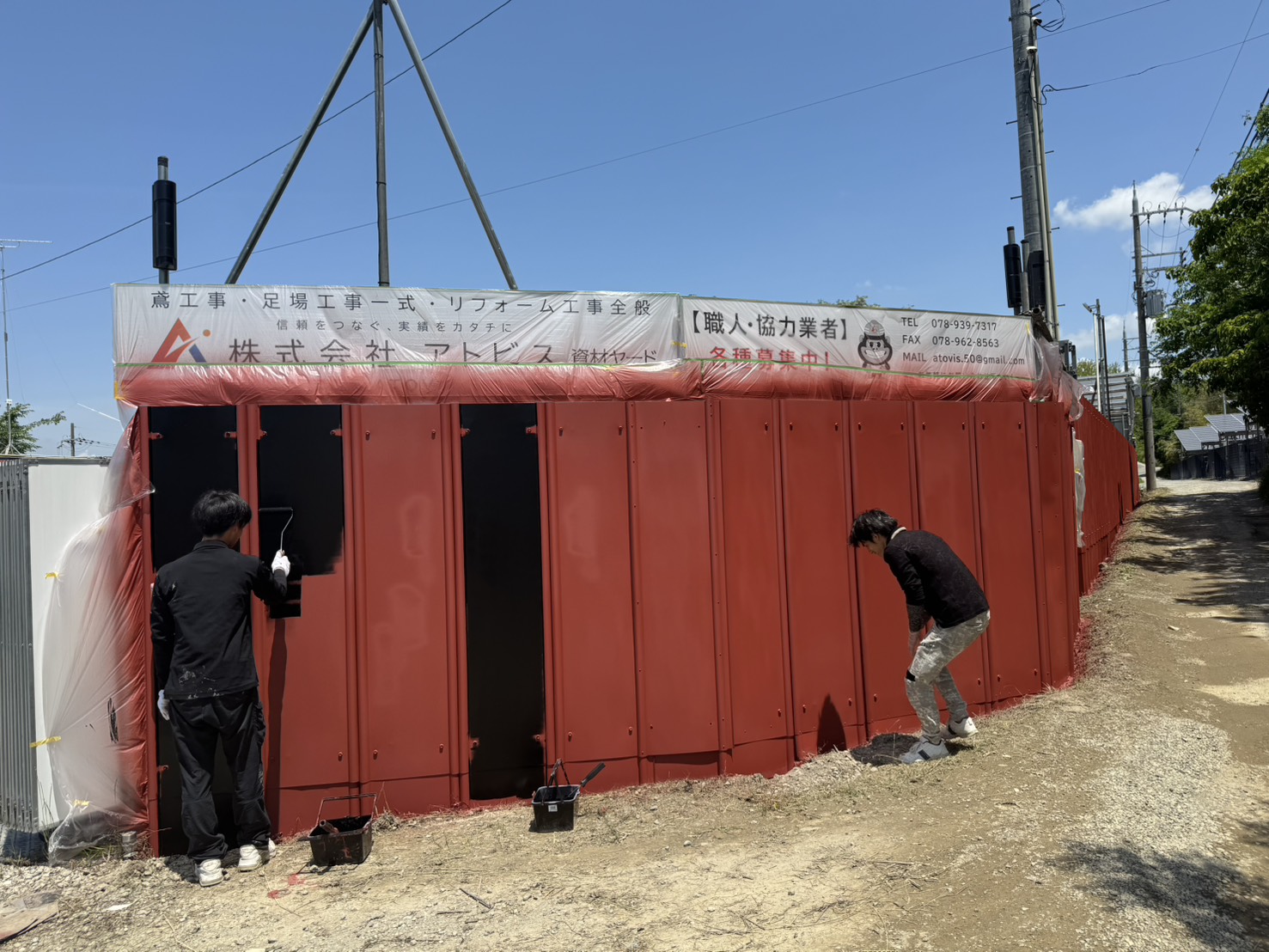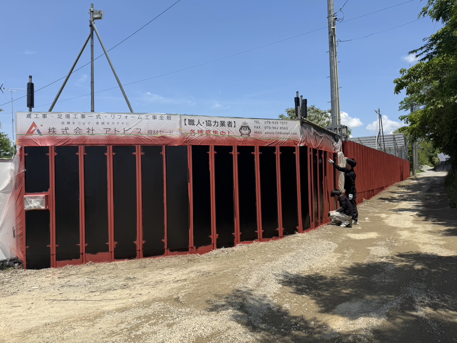 資材ヤードの仮囲いを真っ黒に塗装しちゃいました✨